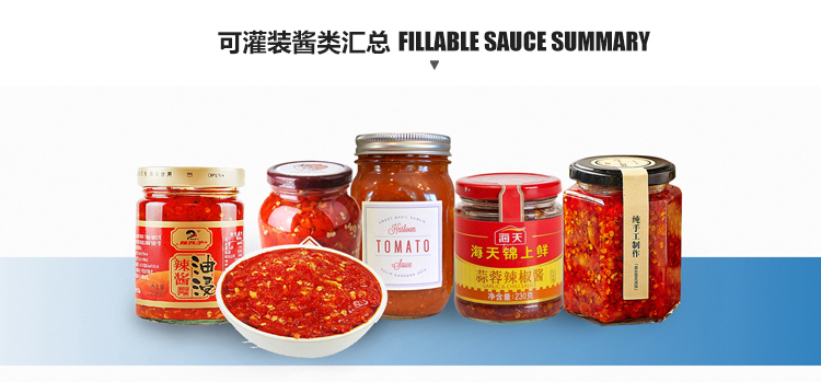 如果是瓶裝的話,可以建議使用我們的辣椒醬灌裝旋蓋一體機(jī)。在一臺(tái)機(jī)械上實(shí)現(xiàn)上蓋灌裝抽真空旋蓋等動(dòng)作。該設(shè)備可以通過(guò)大顆粒醬料,攪拌均勻,具有灌裝精密,運(yùn)行穩(wěn)定可靠、工作效率高、壽命長(zhǎng)、維護(hù)間單等特點(diǎn)。廣泛適用于各種含顆粒的半流體、膏體、醬料的灌裝,也可灌裝各種粘稠體等,價(jià)格方面也非常合適。